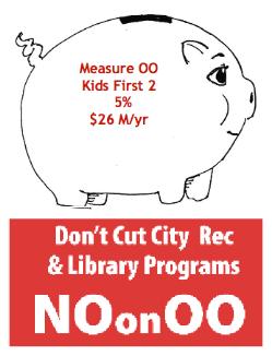 Vote Against: Opponents appreciate the programs, yet reject the budgeting tactics. “The City Council already has extended the original funding for an additional 12 years. Measure OO proposes to increase the funding beyond the current level, and to do so forever. What other program is getting its budget doubled in this time of big budget cuts?” (League of Women’s Voters)