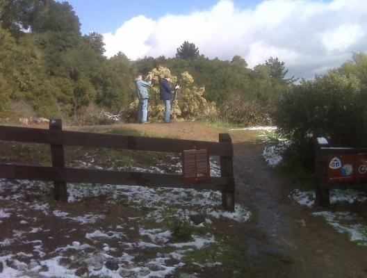 There was snow on many rooftops below 1,000 feet, and bushes and hillsides remains sprinkled as well. Once we rounded the bend to Skyline Boulevard, the evidence of wintertime was everywhere.
