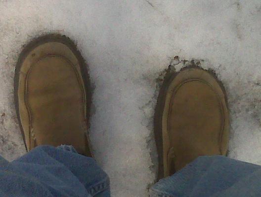 Evidence #1: Well, you can see the snow underfoot, which wasn’t deep but definitely widespread. I should have dressed up for the occasion with real winter boots, but you get the picture looking down. It felt great to hear and feel the crunch for a while today.