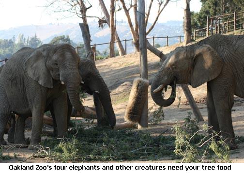We just noticed the Oakland Zoo is asking for dead tree donations, because zookeepers need to feed the elephants and other animals living there. Now that we’re cleaning up from the storms, there’s plenty to share. How can you resist?