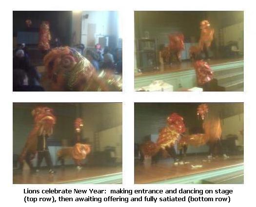 Traditional lions danced to their large drum, with front and backseat drivers directing them through the audience and up to the stage. The hungry felines expected an offering, and District 4 Council Rep Jean Quan presented a lettuce head to them. Properly and fully satiated, our lions departed for other New Year’s celebrations throughout the city.