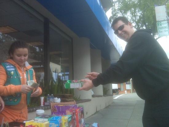 Within minutes, we caught one happy buyer and seller in mid-transaction. No matter what happens over the decades, the buyers still want these cookies and are pleased to fork over $4 per box.