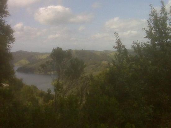 Ah, perfect greens abounded on this wet April day! In this view, you see the urban and wilderness divide. Anthony Chabot Park is in front, while Chabot Golf Course appears in the valley below. Beyond these largest hills, there’s a gray-colored ridge fully occupied by humanity – it’s Hayward, the CSU-East Bay Campus and points south.